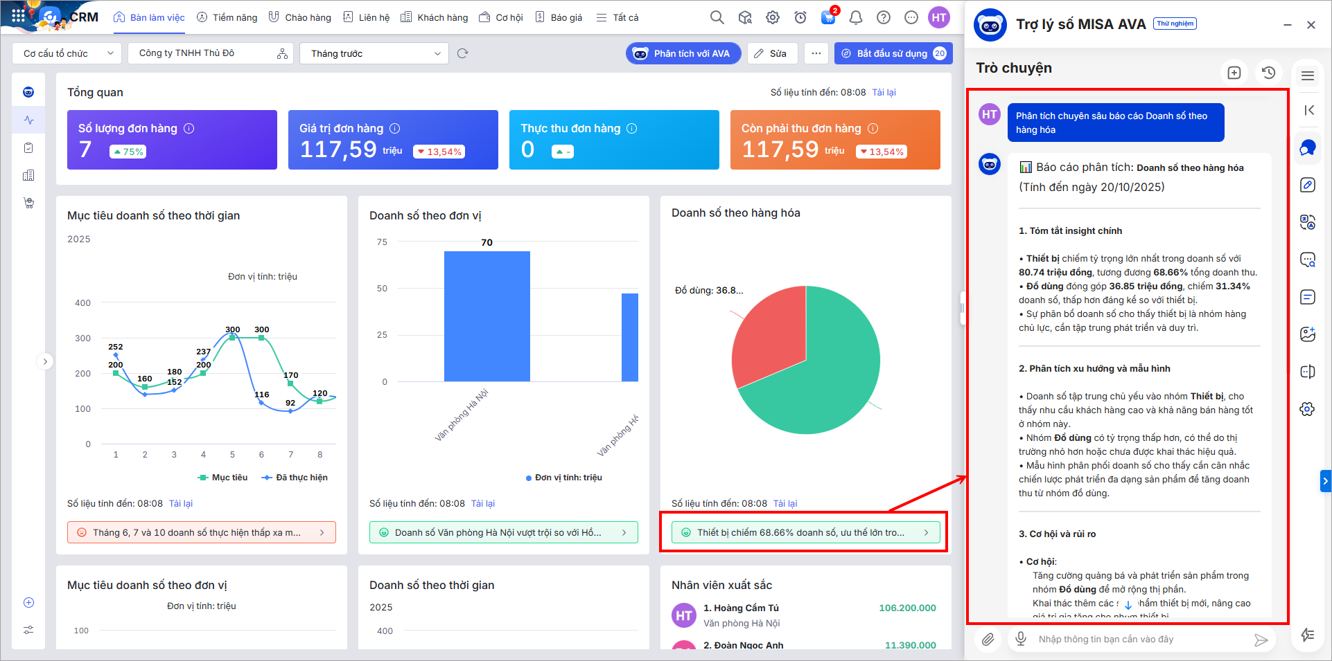 Kết quả phân tích chuyên sâu sẽ hiển thị trong khung chat với trợ lý số MISA AVA.
