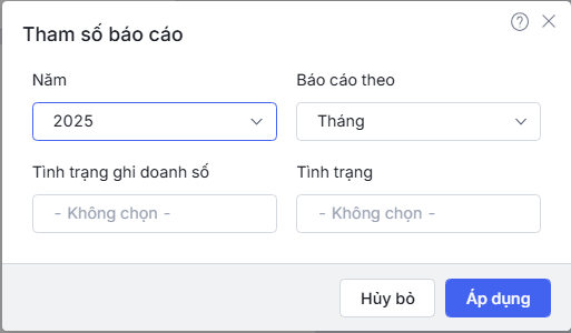 • Tình trạng ghi doanh số, Tình trạng tương ứng được chọn ở tham số.