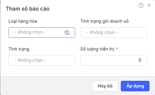 phía bên phải tên báo cáo\Chọn tham số báo cáo\Nhấn Áp dụng.