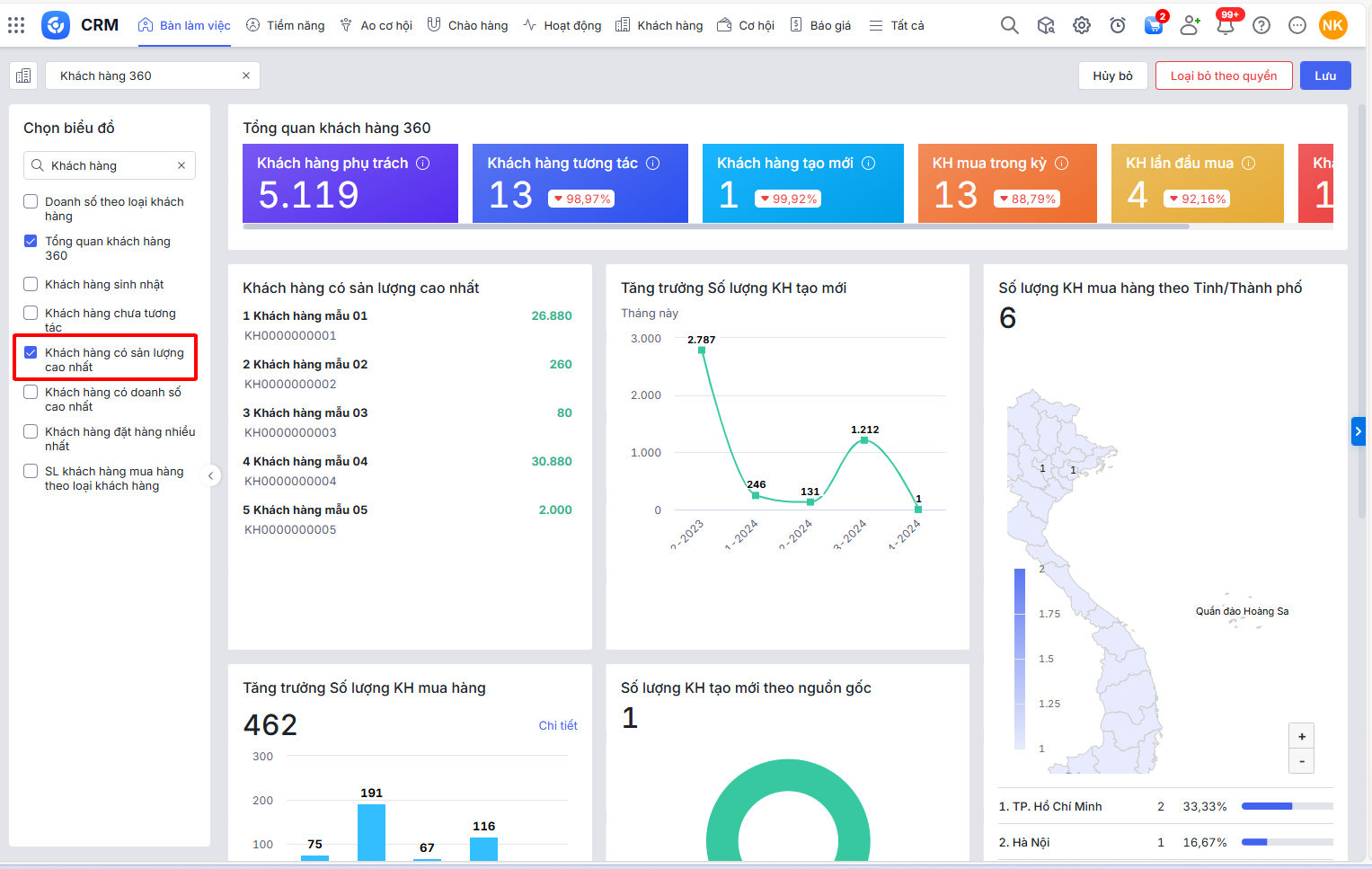 Bài viết hướng dẫn cách xem và phân tích báo cáo “Khách hàng có sản lượng cao nhất” trên Bàn làm việc của AMIS CRM. Báo cáo này cung cấp một danh sách xếp hạng các khách hàng hàng đầu dựa trên tổng sản lượng mua hàng thực tế (đã trừ hàng trả lại). Dựa vào đây, nhà quản lý và đội ngũ kinh doanh có thể nhanh chóng xác định đâu là những khách hàng cốt lõi, đóng góp lớn nhất vào sản lượng tiêu thụ, từ đó xây dựng các chính sách chăm sóc đặc biệt để duy trì và phát triển mối quan hệ kinh doanh.