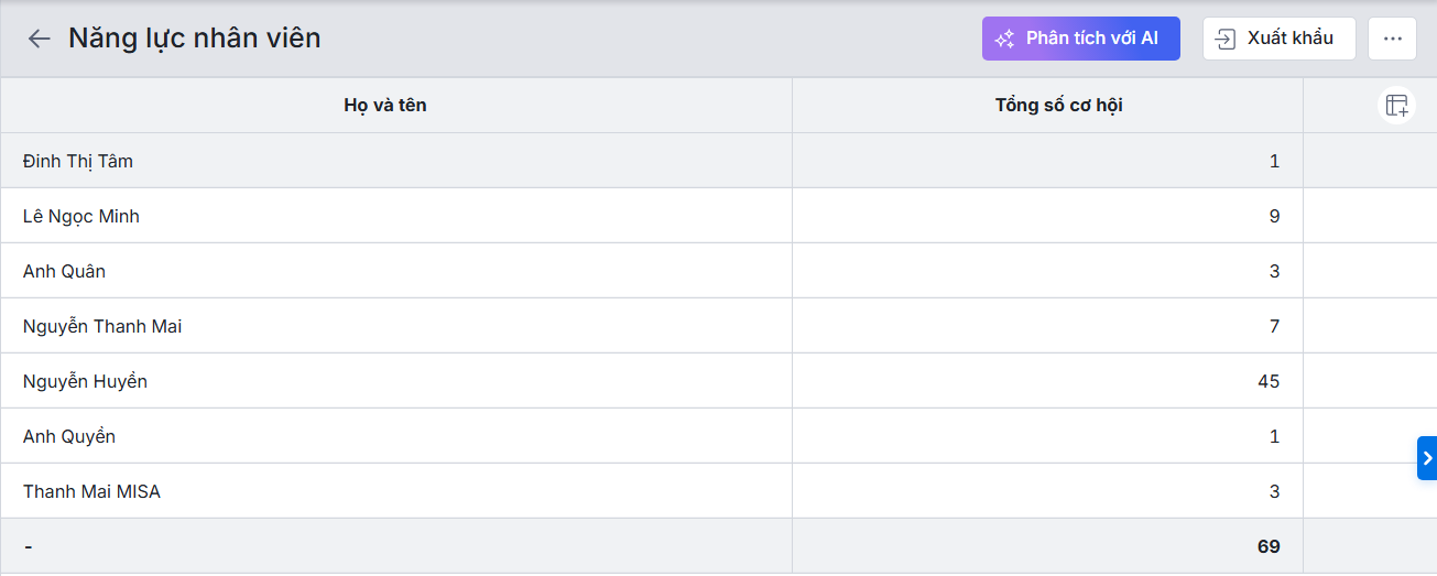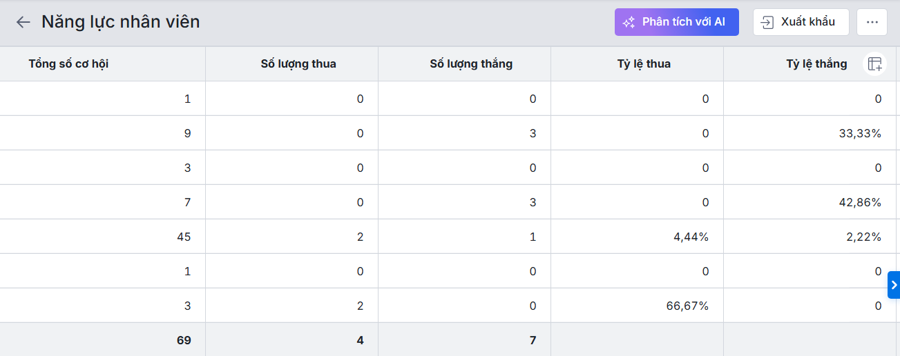 Bài viết hướng dẫn cách xem và lấy số liệu Báo cáo Năng lực nhân viên trên AMIS CRM. Báo cáo giúp đánh giá tình hình bán hàng và chăm sóc cơ hội của từng NVKD, bao gồm: tổng số cơ hội được giao, tỷ lệ cơ hội thắng – thua, số cơ hội đang chăm sóc trong kỳ (tháng/tuần/quý) để đưa ra định hướng, giải pháp hỗ trợ kịp thời.
