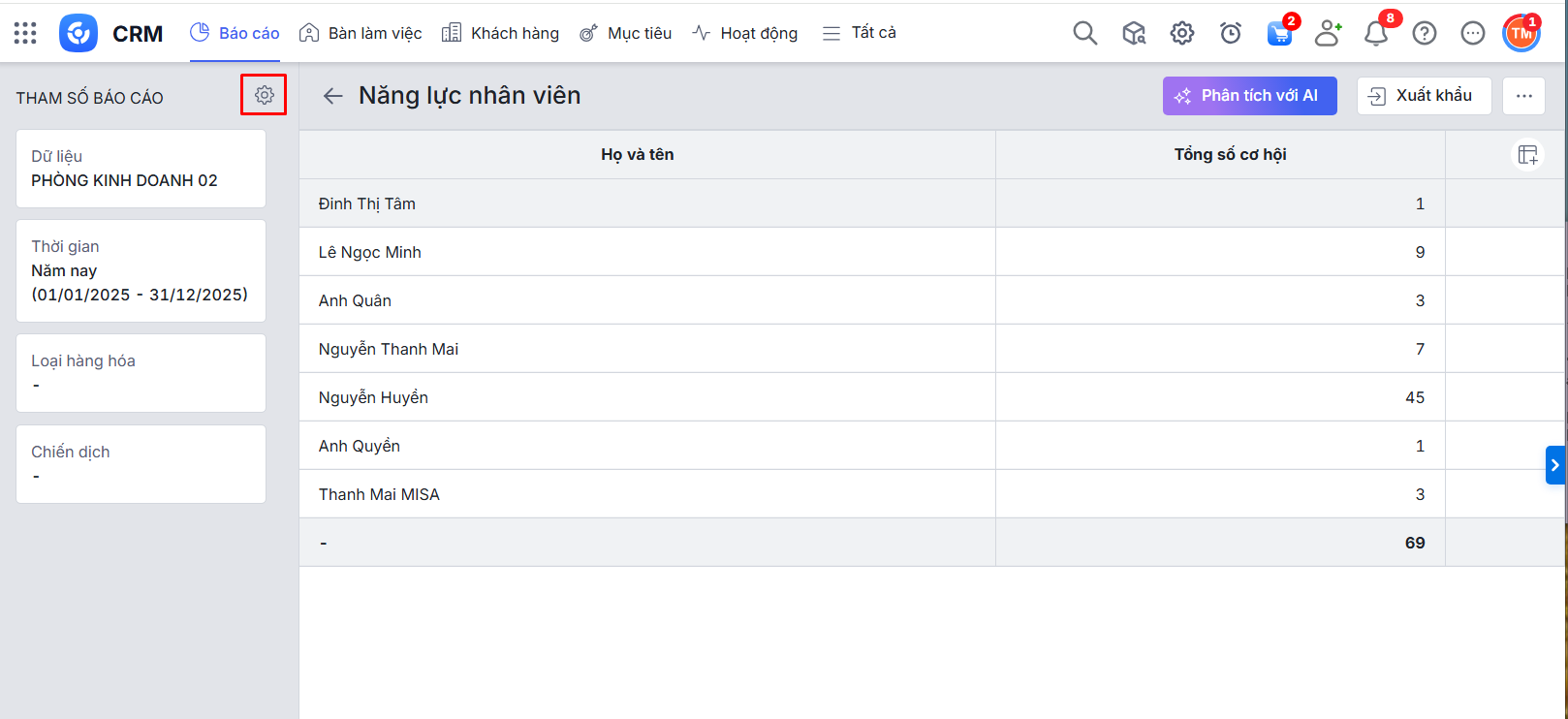 2.2. Cách lấy số liệu trên báo cáo Năng lực nhân viên