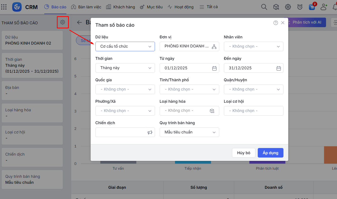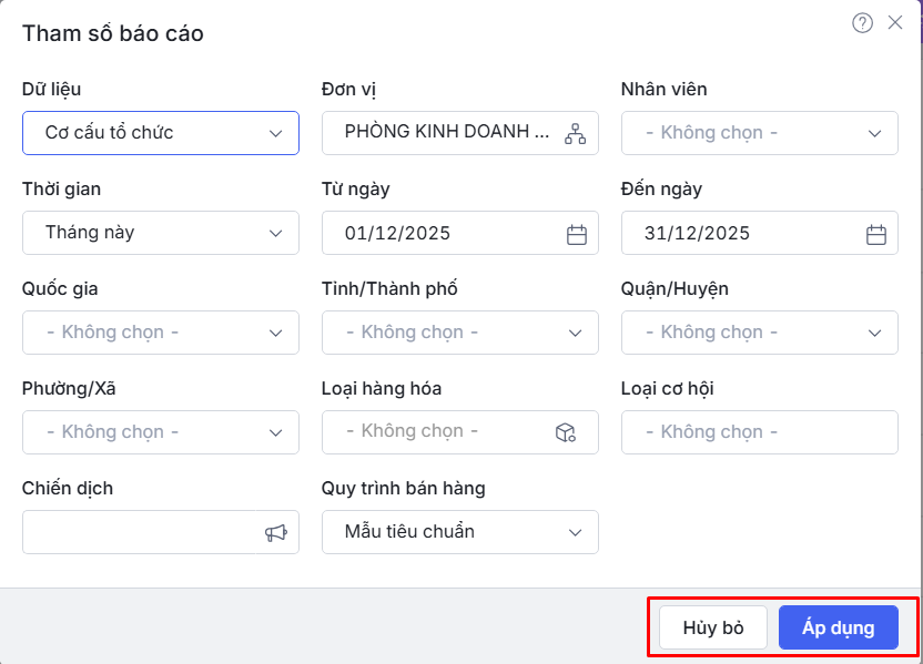 - Cách xem và chọn tham số báo cáo.