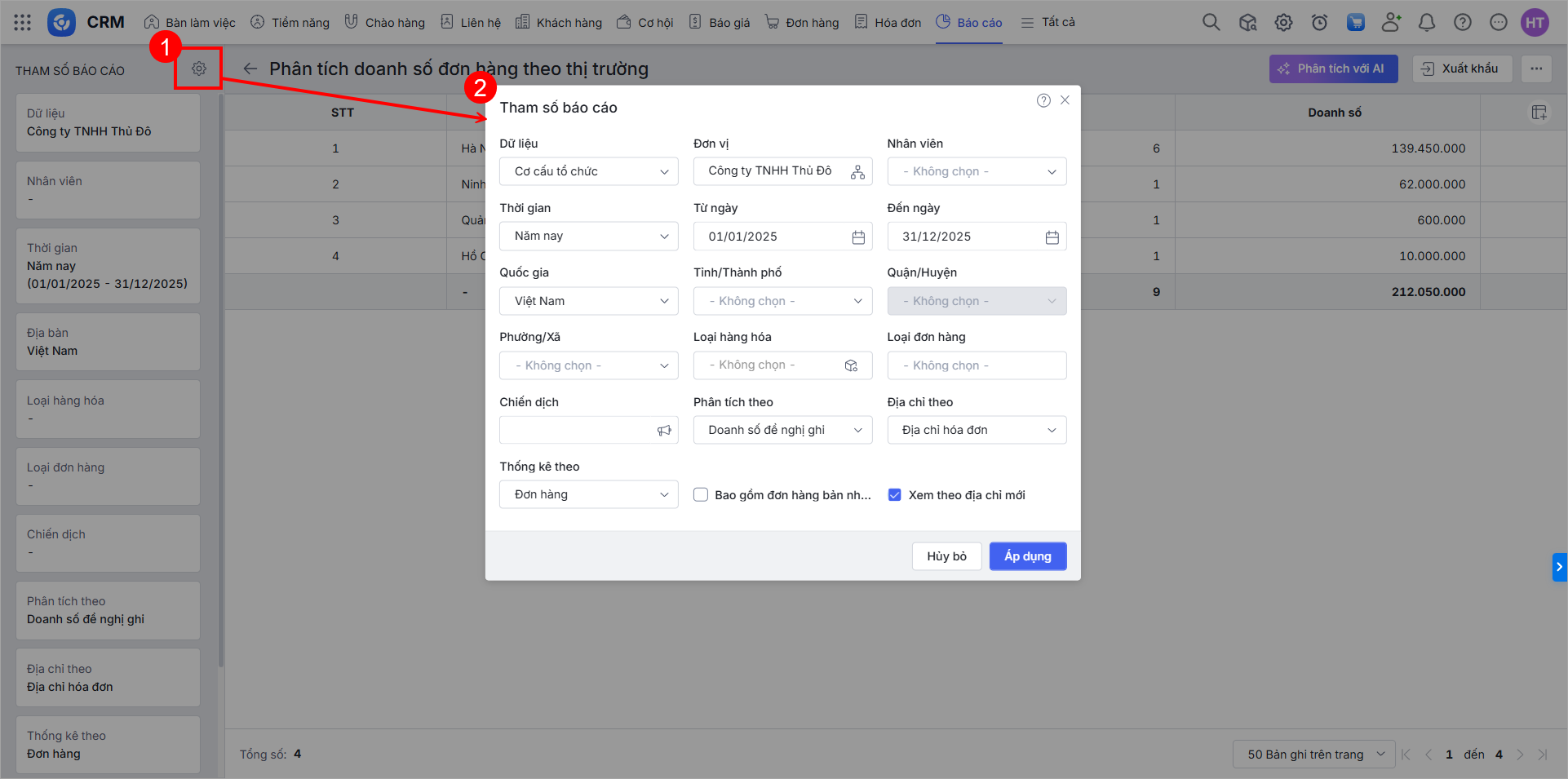 2.1. Hướng dẫn xem báo cáo Phân tích doanh số đơn hàng theo thị trường