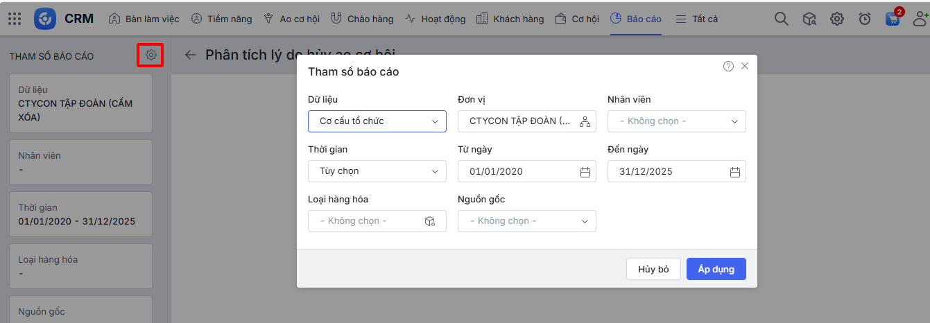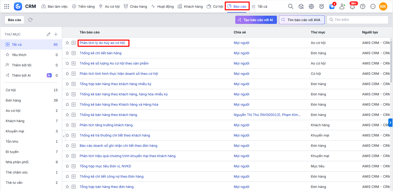 Bài viết hướng dẫn cách xem và phân tích “Báo cáo Phân tích lý do hủy ao cơ hội” trên AMIS CRM. Báo cáo này thống kê chi tiết số lượng Ao cơ hội bị hủy và phân loại theo từng lý do cụ thể, giúp xác định được những nguyên nhân chính dẫn đến việc không chuyển đổi được Ao cơ hội, từ đó có cơ sở để cải tiến quy trình tiếp cận, chất lượng sản phẩm hoặc chiến lược kinh doanh.