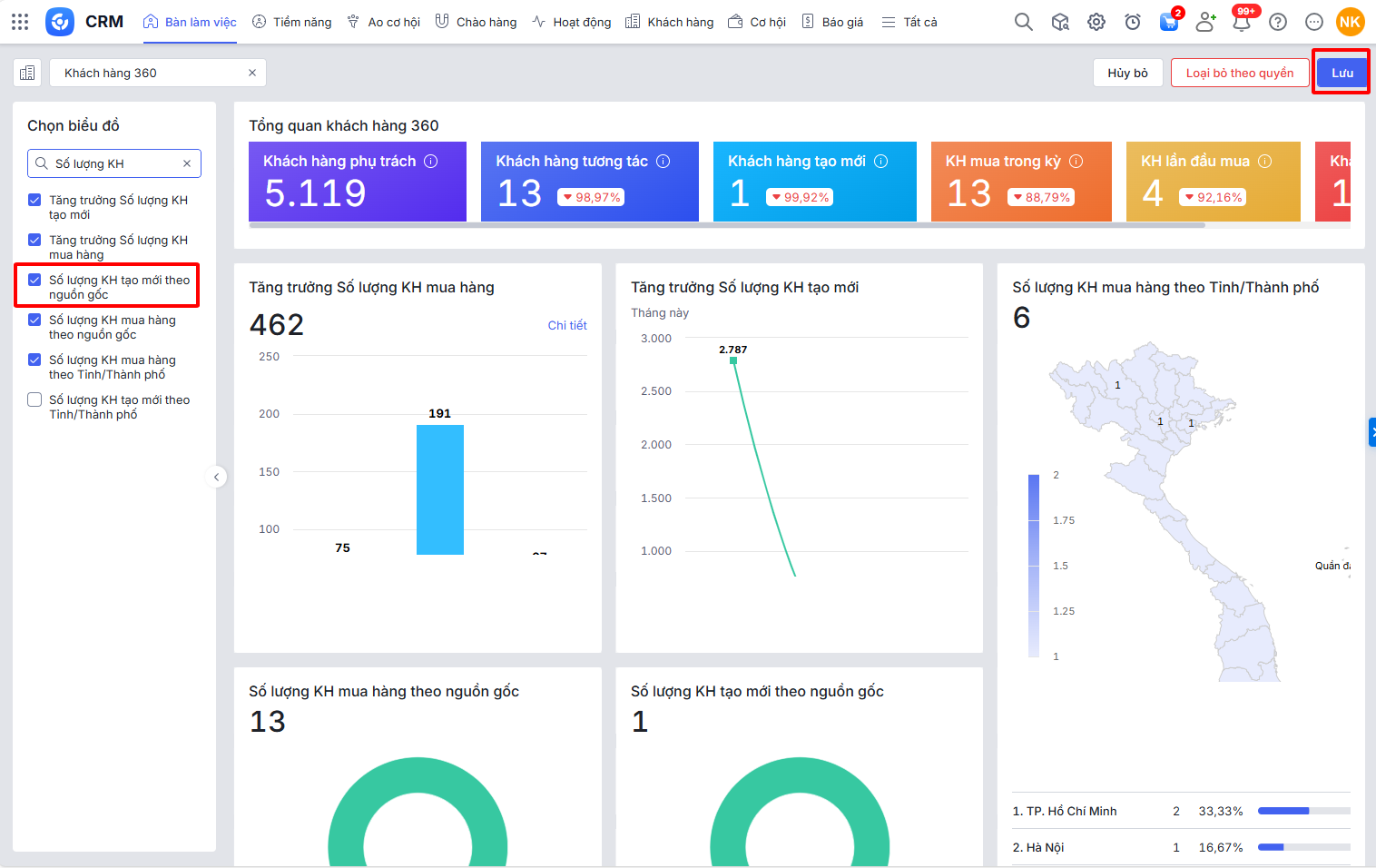 Bài viết hướng dẫn cách xem và phân tích báo cáo “Số lượng khách hàng tạo mới theo nguồn gốc” trên AMIS CRM. Báo cáo này cung cấp một biểu đồ trực quan, phân tích và so sánh hiệu quả của các kênh thu hút khách hàng (ví dụ: Website, Giới thiệu, Quảng cáo…). Qua đó, nhà quản lý có thể nhanh chóng xác định được đâu là nguồn mang lại nhiều khách hàng mới nhất để tối ưu hóa chiến lược marketing và phân bổ ngân sách hiệu quả.