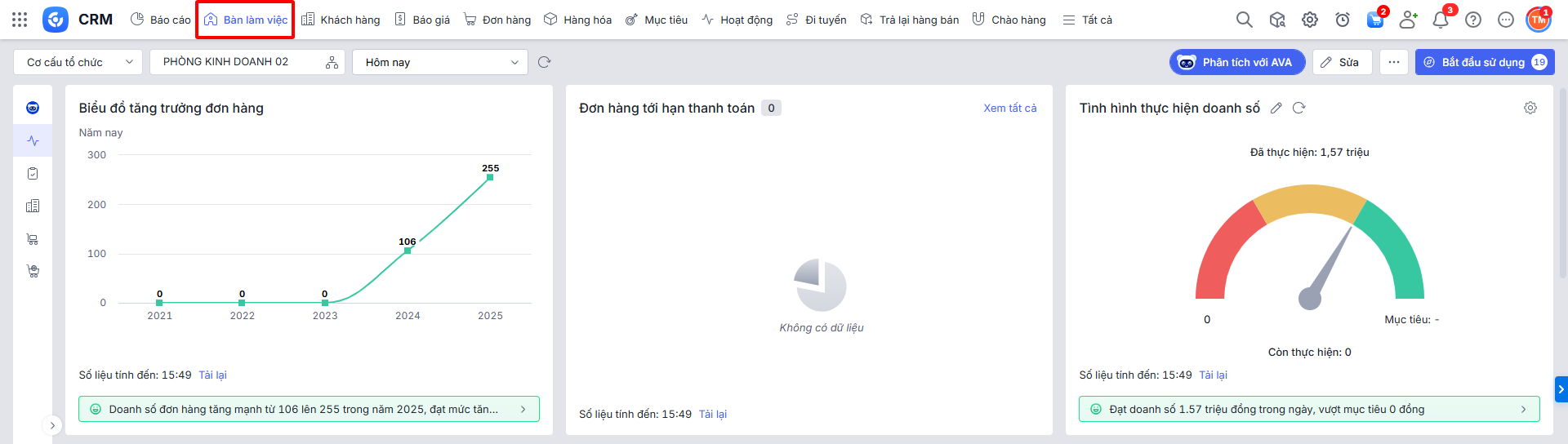 Bước 1: Trên AMIS CRM, vào phân hệ Bàn làm việc.