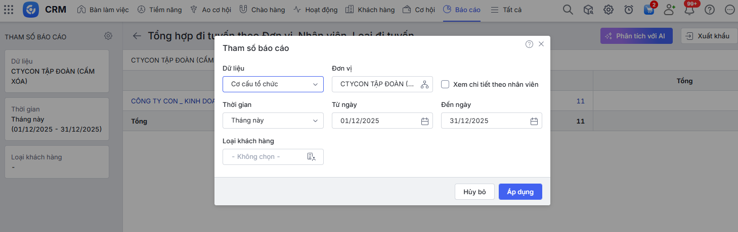 Bài viết hướng dẫn cách xem và phân tích “Báo cáo Tổng hợp đi tuyến theo Đơn vị, Nhân viên, Loại đi tuyến” trên AMIS CRM. Báo cáo này thống kê và phân loại số lượng các lần ghé thăm (check-in) theo từng mục đích cụ thể đã được thiết lập (ví dụ: Chào hàng, Chăm sóc khách hàng, Giao hàng…). Qua đó, nhà quản lý có thể nhanh chóng nắm bắt được cơ cấu hoạt động của đội ngũ thị trường, đánh giá xem các hoạt động có đang tập trung vào đúng trọng tâm chiến lược của công ty hay không
