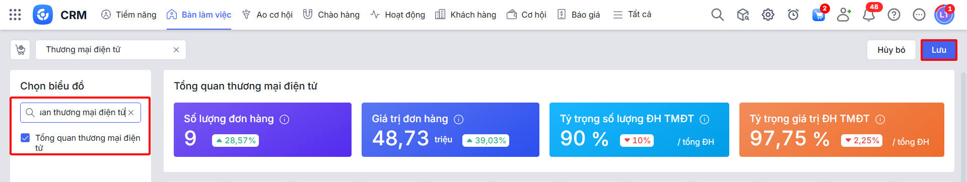 Bước 2: Tại ô tìm kiếm, điền tên báo cáo Tổng quan thương mại điện tử \ tích chọn tên báo cáo \ sau đó nhấn Lưu