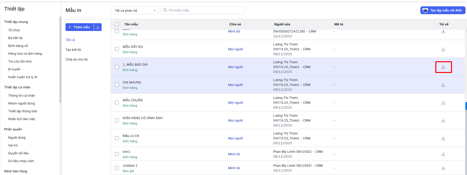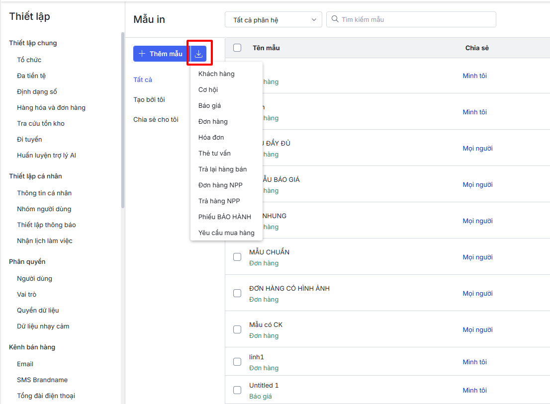 - Thêm mới và Cấu hình Mẫu in trên CRM