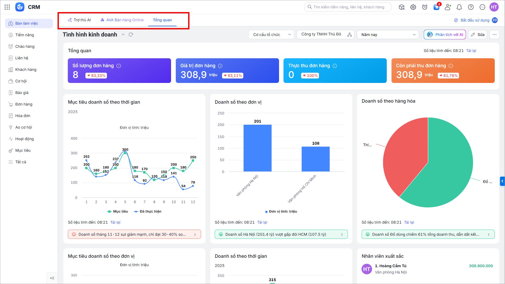 - Ở phân hệ Bàn làm việc, giao diện Tổng quan được hiển thị theo dạng tab.