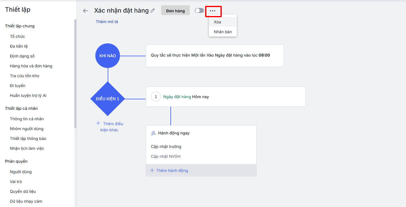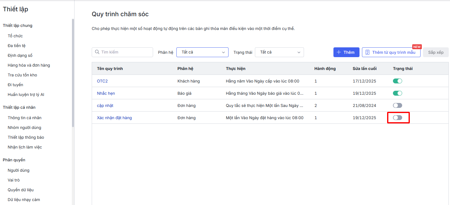 Bài viết hướng dẫn các thao tác quản lý chi tiết một Quy trình chăm sóc đã được thiết lập, bao gồm Sửa, Nhân bản và Xóa. Việc này giúp người dùng dễ dàng cập nhật, tái sử dụng hoặc loại bỏ các kịch bản tự động không còn phù hợp, đảm bảo hệ thống luôn hoạt động một cách tối ưu và linh hoạt theo chiến lược kinh doanh.