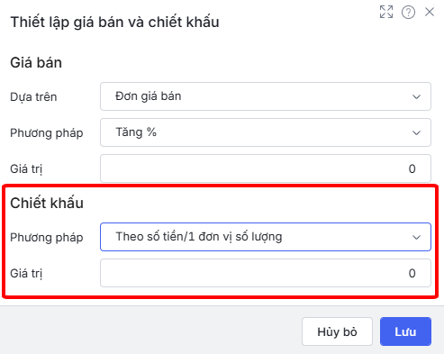 Tiền chiết khấu = Giá trị chiết khấu trong Chính sách giá × Số lượng.