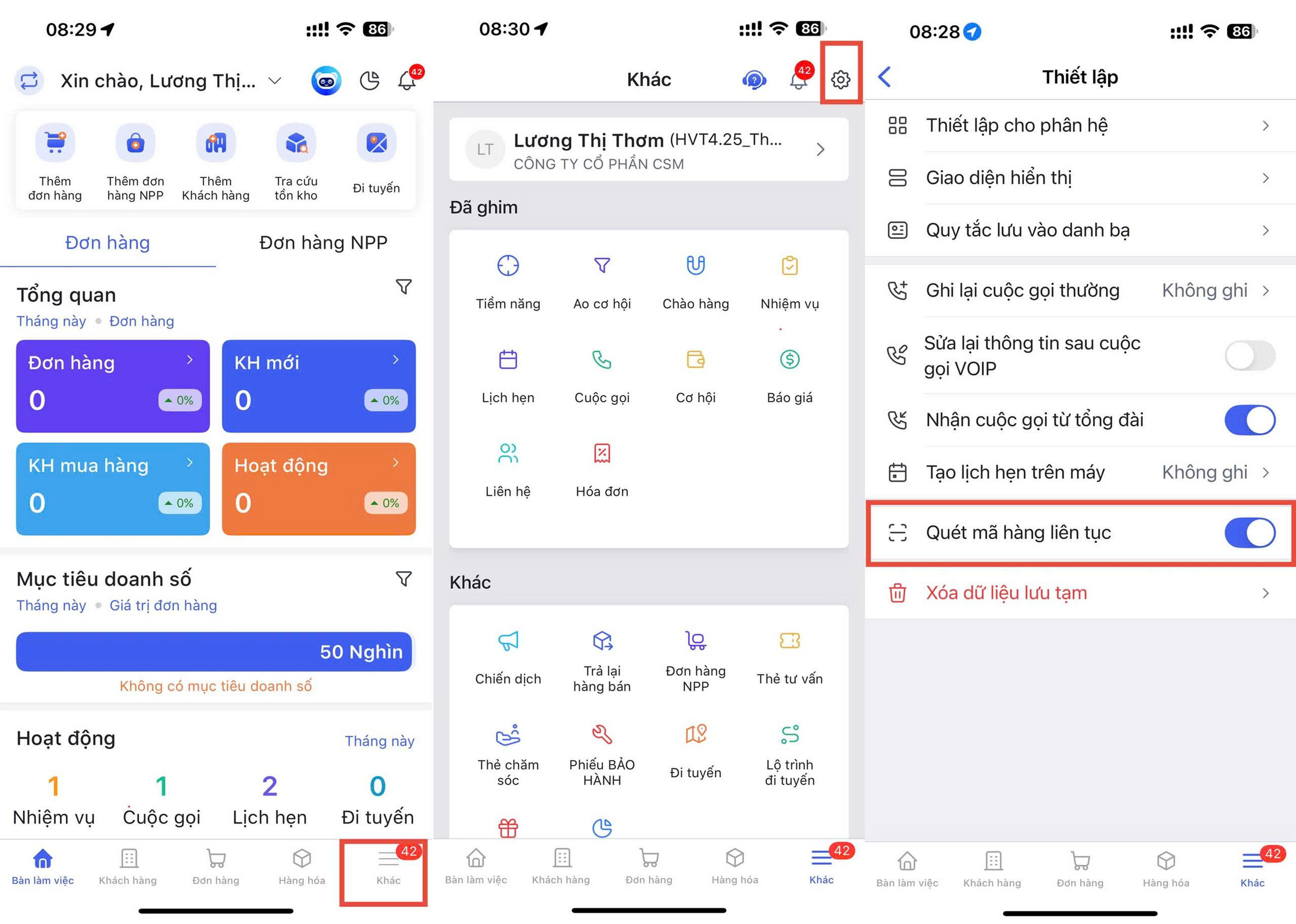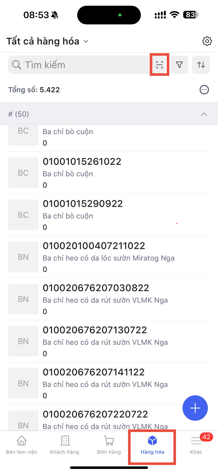 - Barcode được quét phải trùng với mã hàng hóa trên AMIS CRM