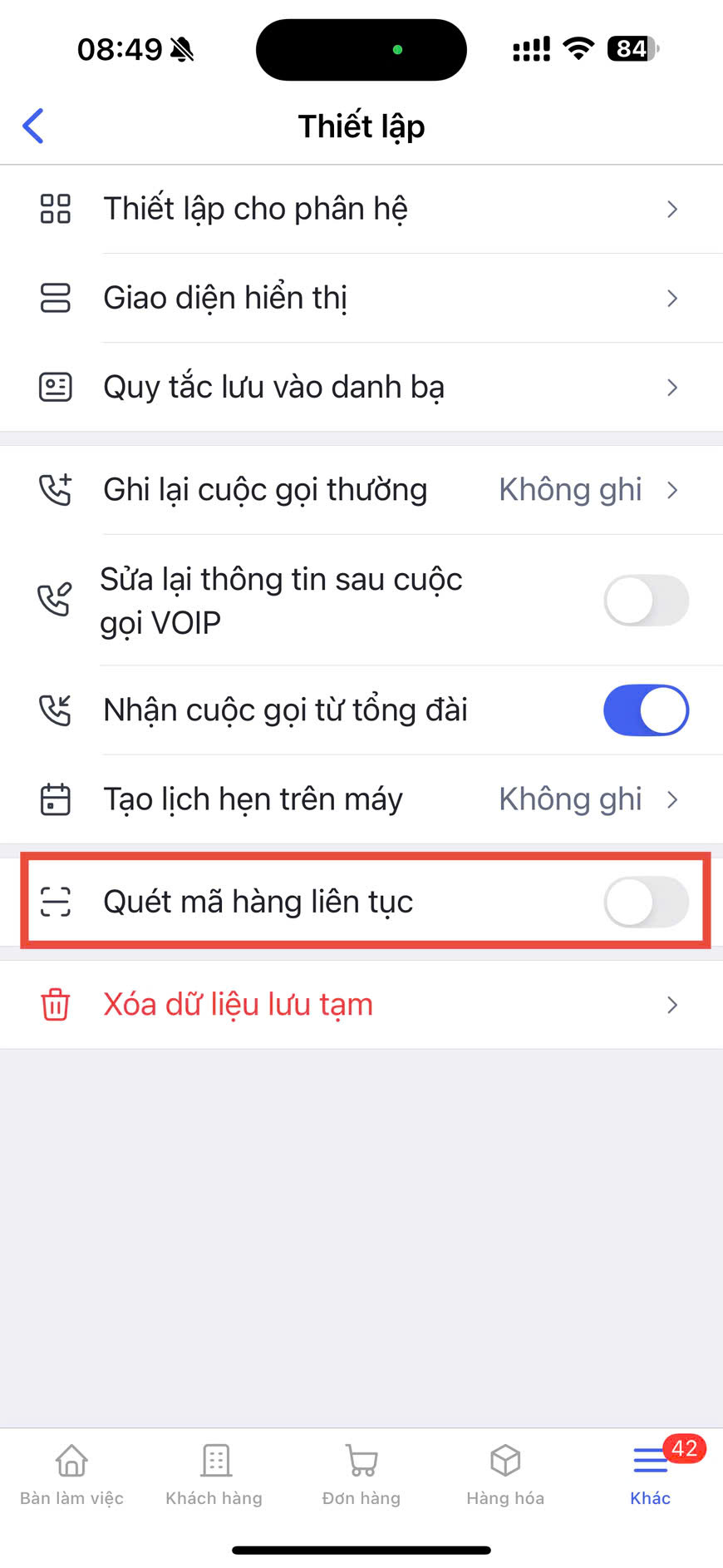 Hướng dẫn thiết lập chế độ quét mã liên tục