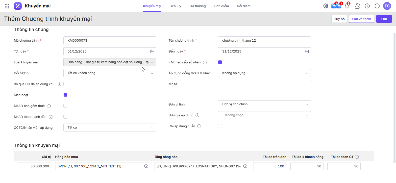 Bài viết hướng dẫn cách thiết lập và áp dụng chương trình khuyến mại theo điều kiện đơn hàng đạt giá trị kèm hàng hóa đạt số lượng để tặng hàng trên AMIS Khuyến mại.