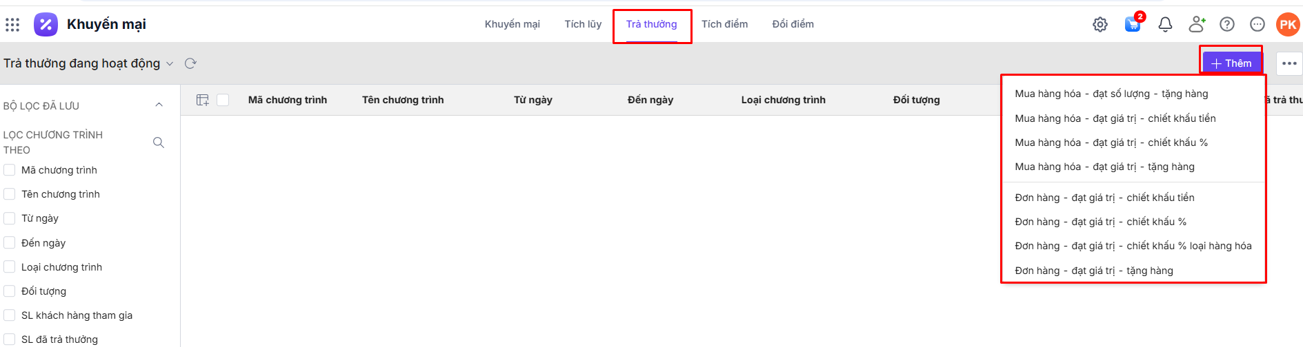Bước 2: Tại tab Trả thưởng \ Thao tác thêm/sửa chương trình trả thưởng theo mong muốn, sau đó bấm Lưu.