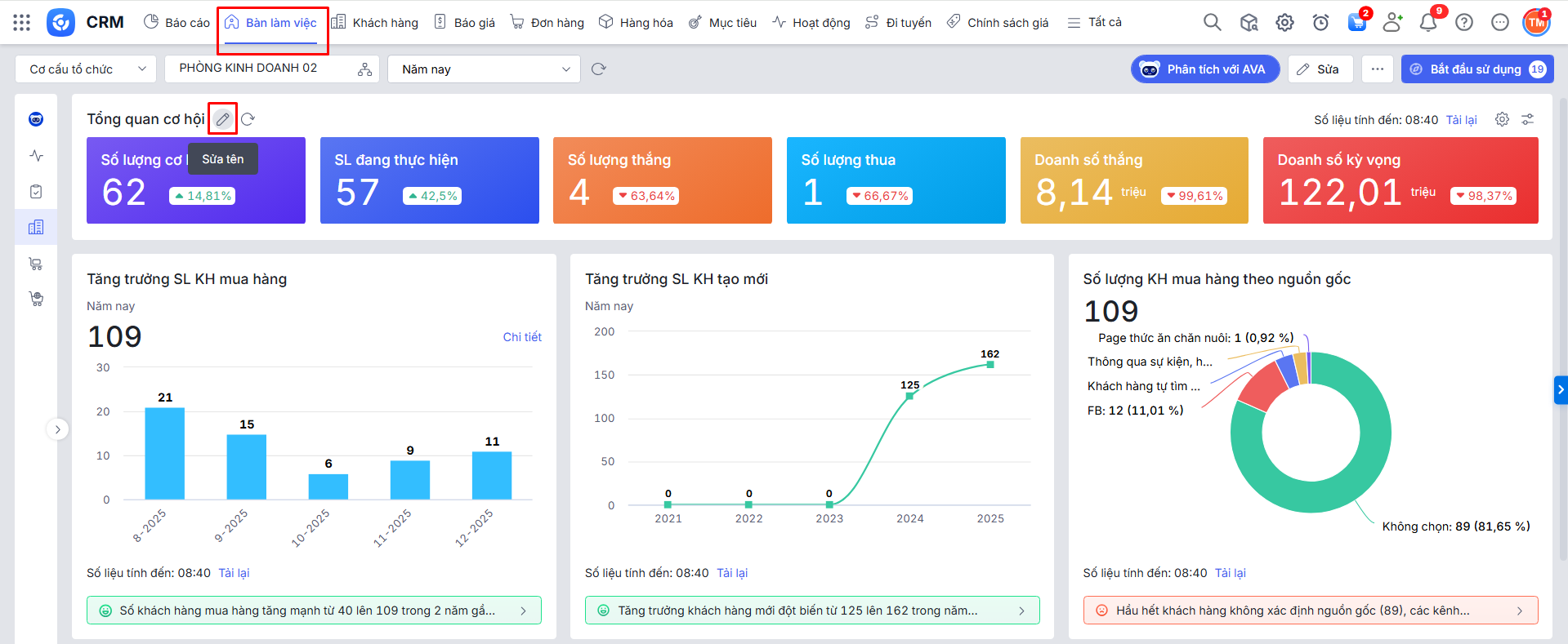 Bước 1: Ở báo cáo trên Bàn làm việc\Di trỏ chuột vào 1 báo cáo bất kỳ\Nhấn biểu tượng cây bút