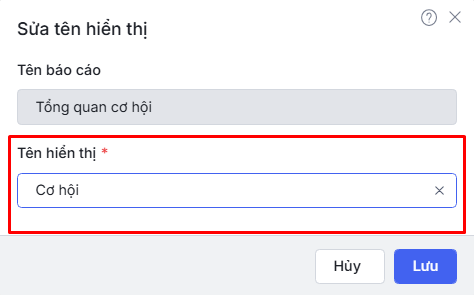 Bước 2: Tại mục Tên hiển thị\Nhập tên muốn đổi của báo cáo.