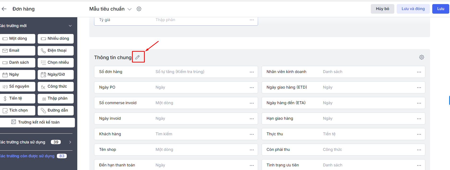 Bước 4: Để Sửa tên các mục thông tin trong bố cục\ Nhấn biểu tượng cây bút ở cạnh tên mục thông tin để sửa.