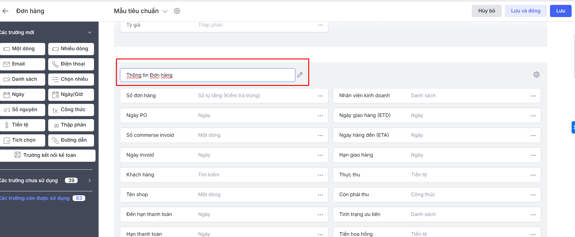 • Cách sửa tên mục thông tin khi thêm/sửa bố cục.