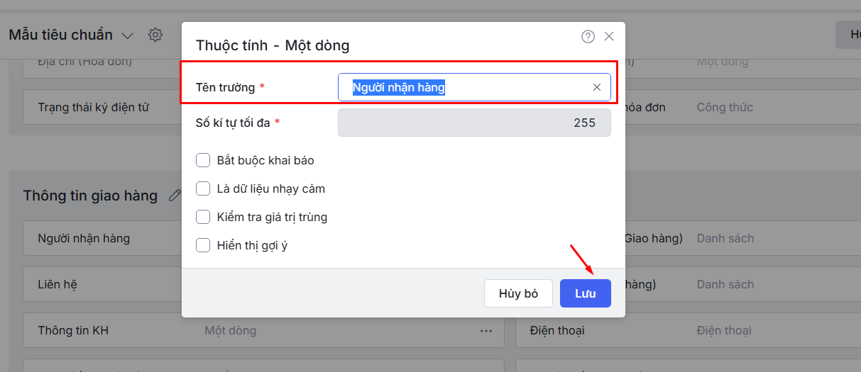 Bước 2: Điền lại tên trường thông tin.