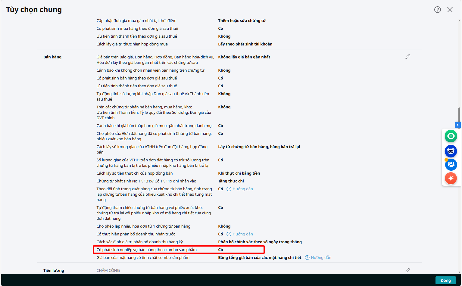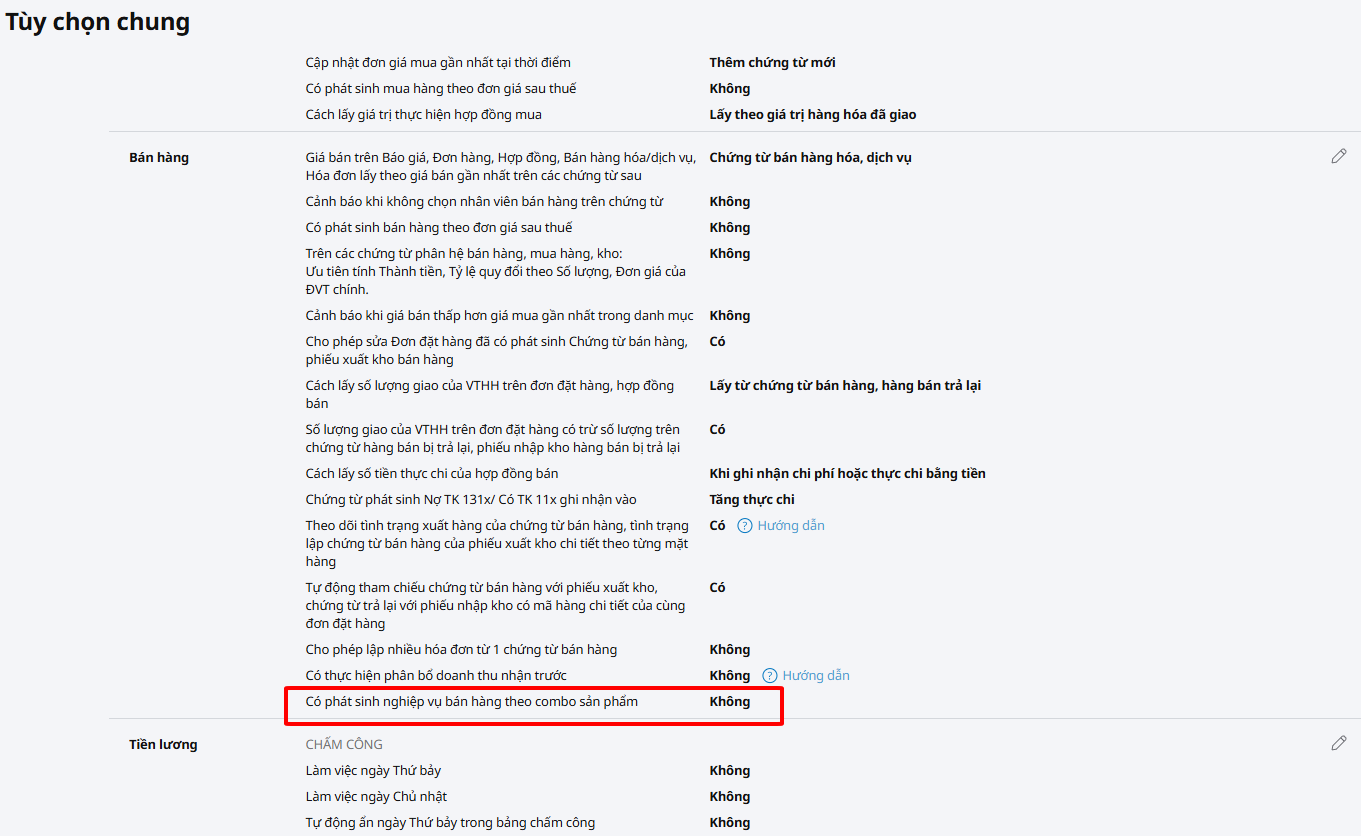 - Trường hợp AMIS Kế toán có Bật thiết lập Có phát sinh nghiệp vụ bán hàng theo combo sản phẩm: