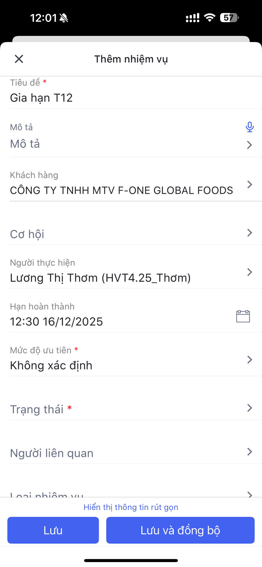 Đồng bộ nhiệm vụ từ AMIS CRM mobile sang AMIS Công việc (mobile)