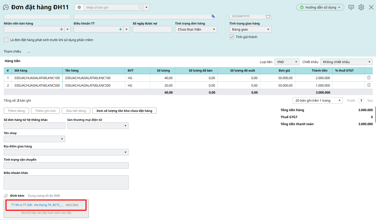 - Khi đồng bộ Báo giá, Đơn hàng của CRM sang Báo giá, Đơn đặt hàng/Hợp đồng của Kế toán thì đồng bộ DSLQ Tài liệu đính kèm của CRM sang Đính kèm của Kế toán