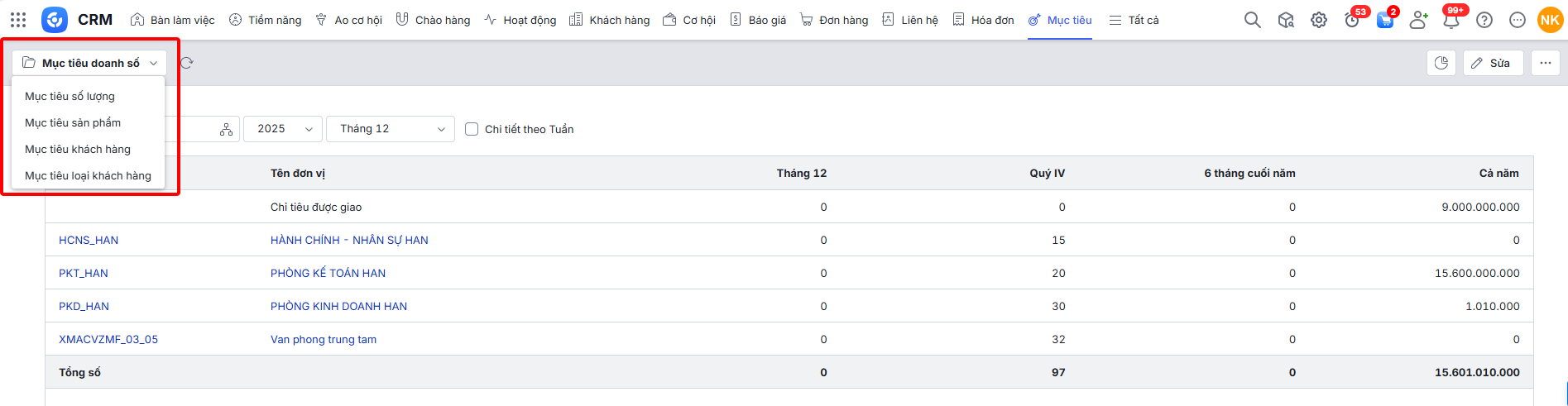 Bước 3: Nhấn Sửa để giao mục tiêu doanh số.