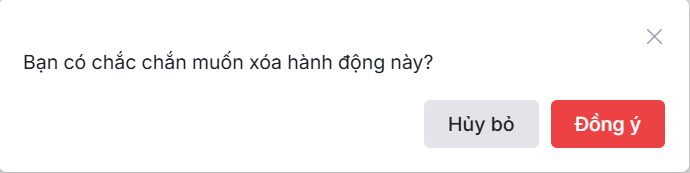 • Cách 2: Trên màn hình danh sách hành động, di chuột vào dòng hành động muốn xóa và nhấn biểu tượng thùng rác 🗑️ \ sau đó nhấn Đồng ý để hoàn thành.