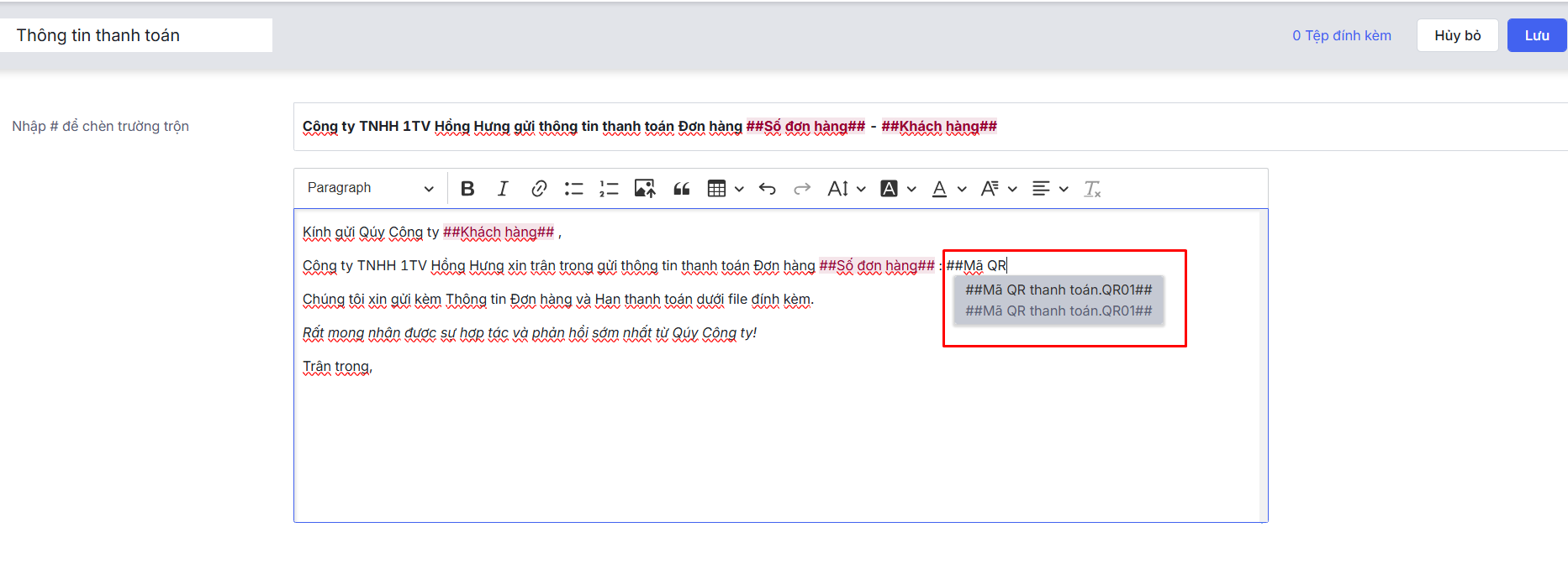 Bước 4: Ở ô soạn nội dung, nhập # + tên trường trộn QR thanh toán.