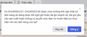 • Nhấn Đồng ý: Để hệ thống tiếp tục đánh lại số cho các đơn hàng hợp lệ (Bản nháp, Từ chối ghi) và tự động bỏ qua các bản ghi lỗi.