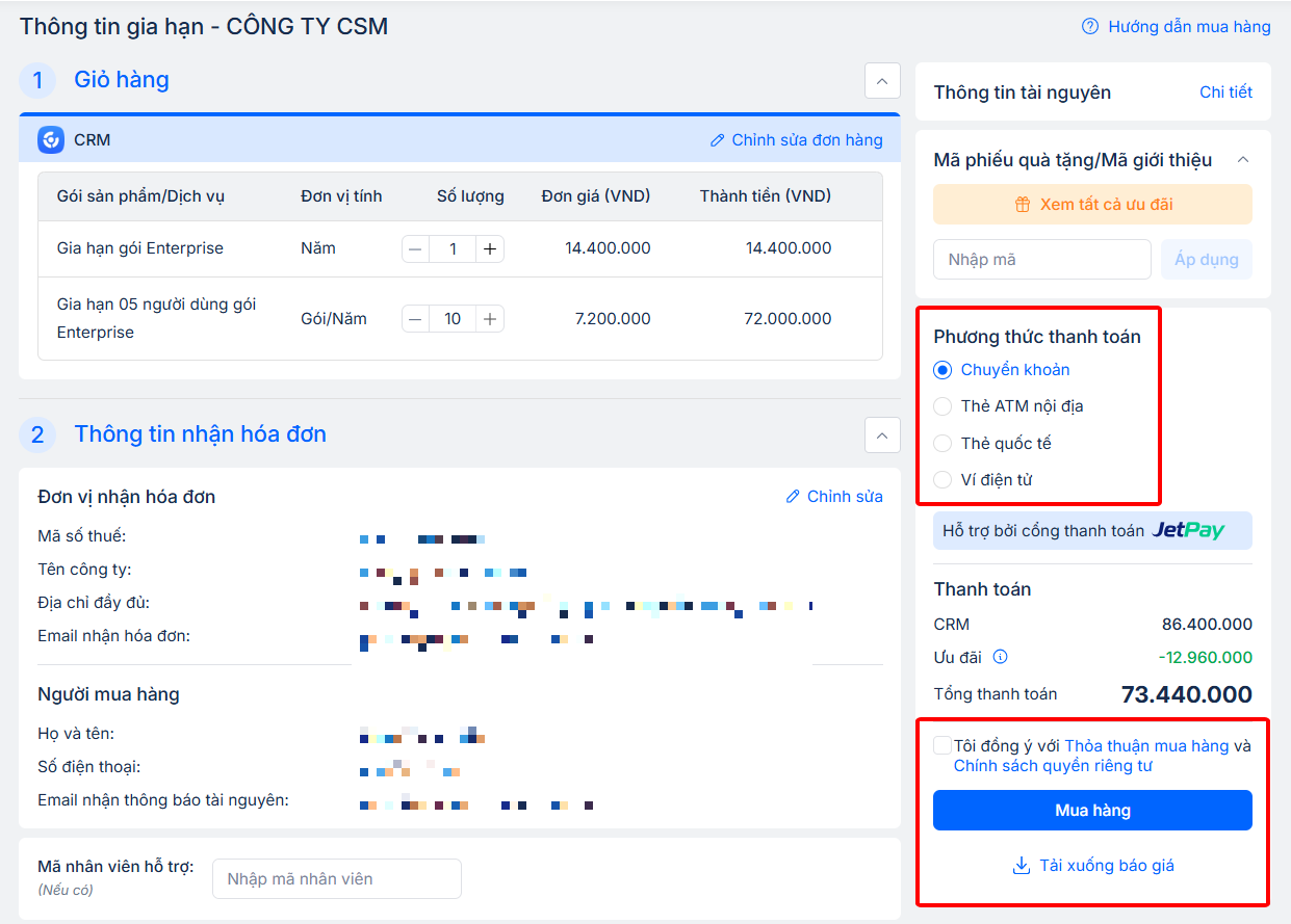 - Tích chọn “Tôi đồng ý với Thỏa thuận mua hàng và Chính sách quyền riêng tư” để xác nhận đồng ý với các điều khoản trước khi mua hàng.