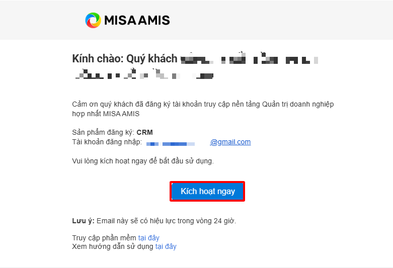 Sau khi thanh toán thành công, MISA sẽ gửi email thông báo về việc đã thanh toán trực tuyến đơn hàng phần mềm AMIS CRM và MISA sẽ thực hiện cấp tài nguyên cho theo đúng nội dung đơn hàng.