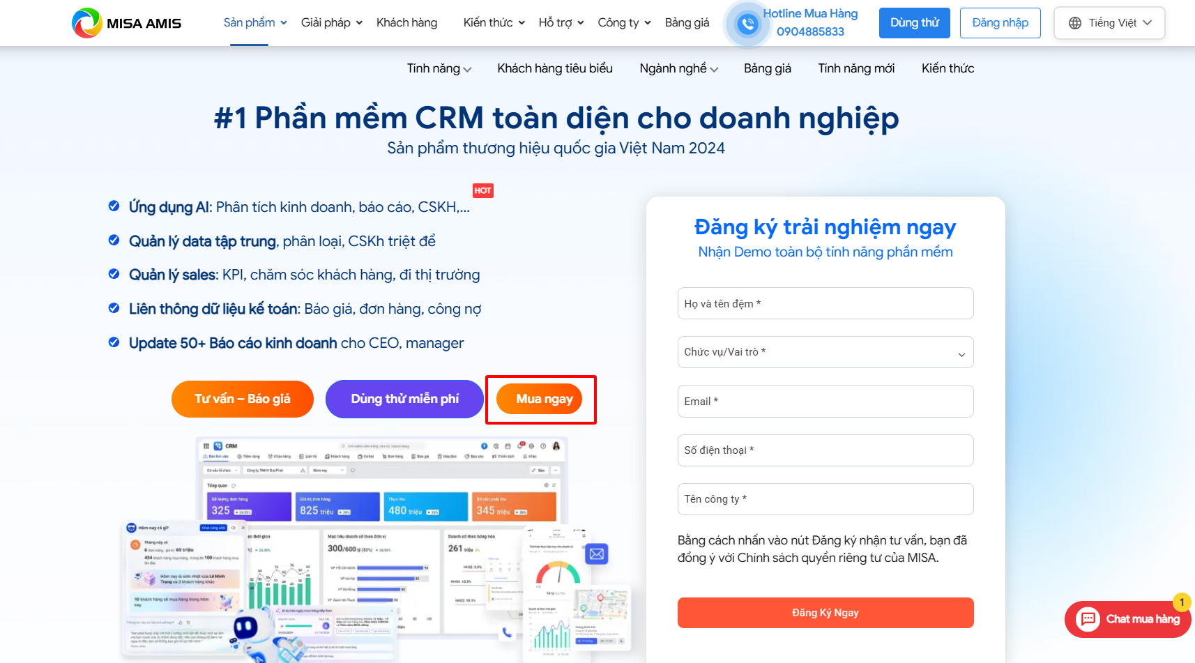 Có thể Đăng ký dùng thử sản phẩm để trải nghiệm các tính năng nổi bật của phần mềm trước khi tiến hành Đặt mua sản phẩm.