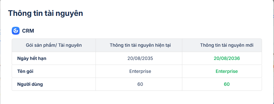 Bước 2: Phần mềm hiển thị các ứng dụng \ tìm đến ứng dụng CRM và nhấn Gia hạn
