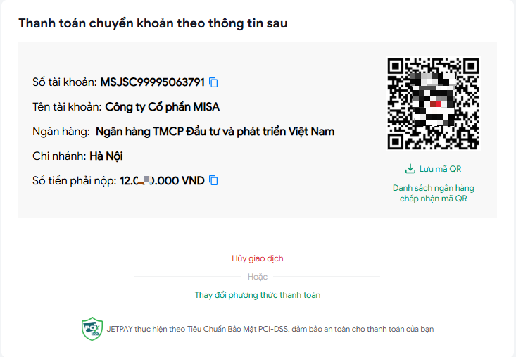 Bước 7: Sau khi mua hàng thành công, phần mềm sẽ hiển thị thông tin số tài khoản (STK) và mã QR \ tiến hành thực hiện thanh toán.