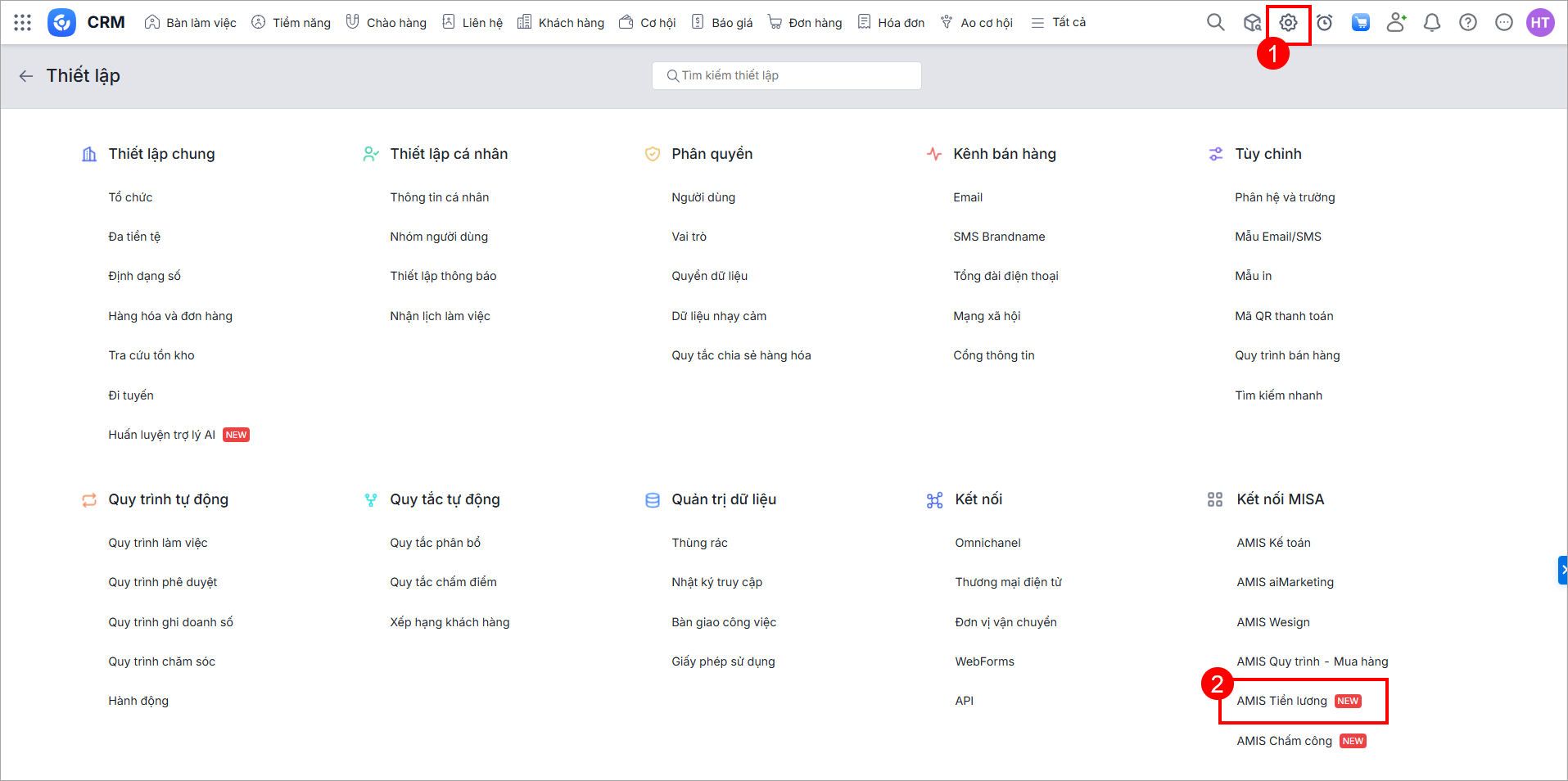 - Hướng dẫn thiết lập kết nối AMIS CRM với AMIS Tiền lương