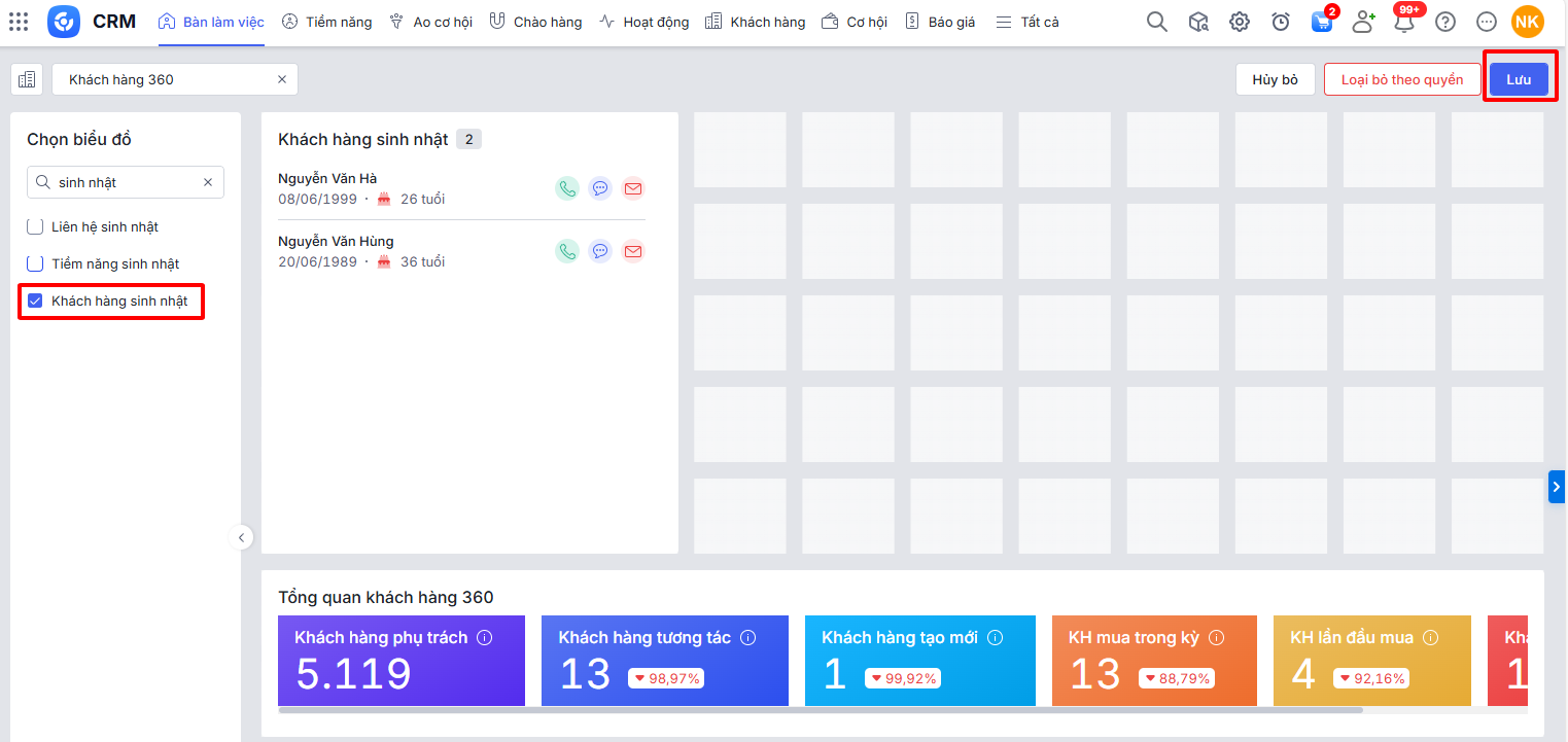 Bài viết hướng dẫn cách xem và sử dụng báo cáo “Khách hàng sinh nhật” trên Bàn làm việc của AMIS CRM. Báo cáo này cung cấp một danh sách các khách hàng (bao gồm cả cá nhân và tổ chức) có ngày sinh nhật hoặc ngày thành lập sắp tới, kèm theo các nút hành động nhanh. Đây là một công cụ hữu ích giúp đội ngũ kinh doanh và chăm sóc khách hàng chủ động gửi lời chúc mừng, tri ân, từ đó củng cố mối quan hệ và gia tăng lòng trung thành của khách hàng.
