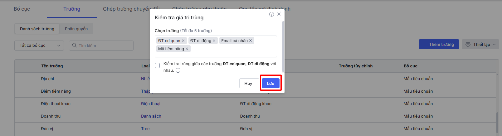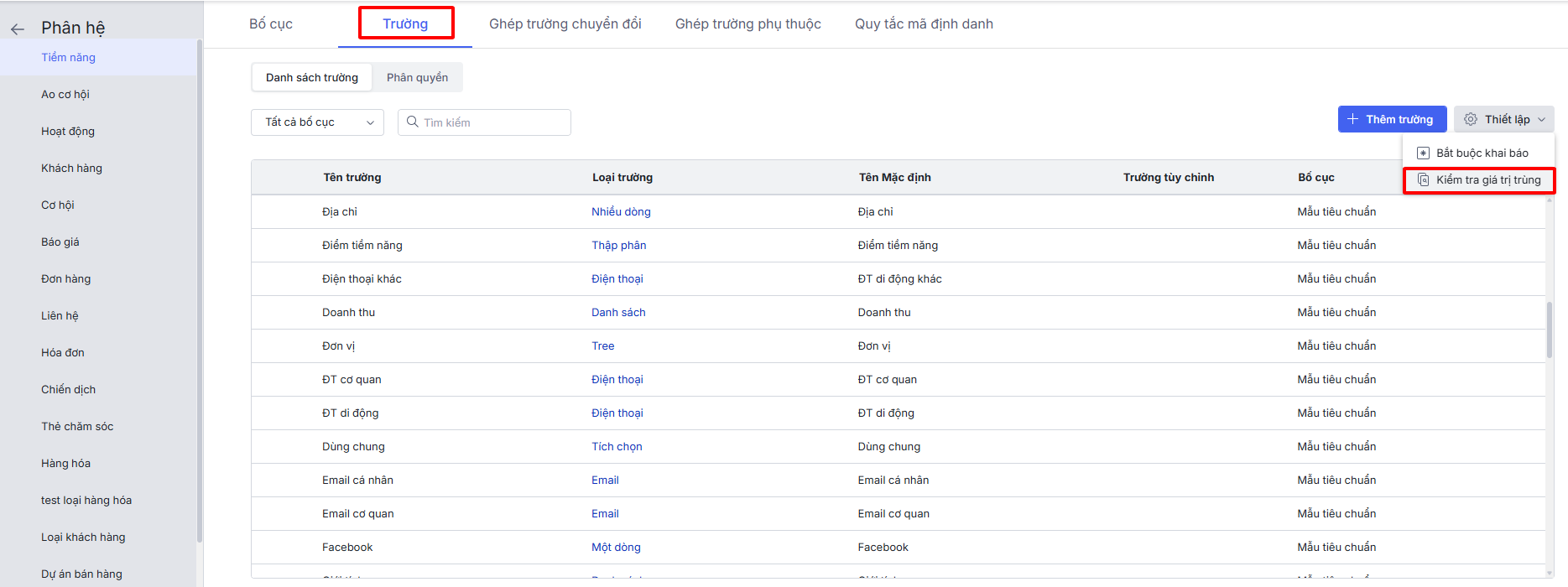 - Quy trình thiết lập các trườngkiểm tra trùng