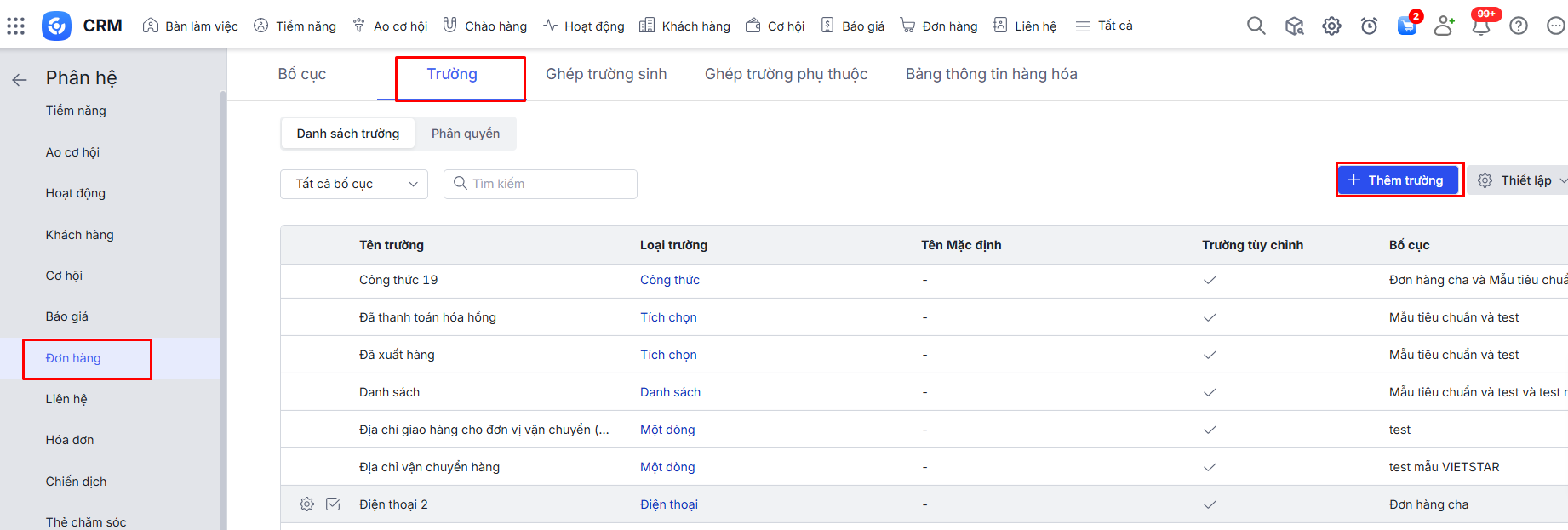 • Thiết lập trường mở rộng trong phân hệ Đơn hàng trên AMIS CRM
