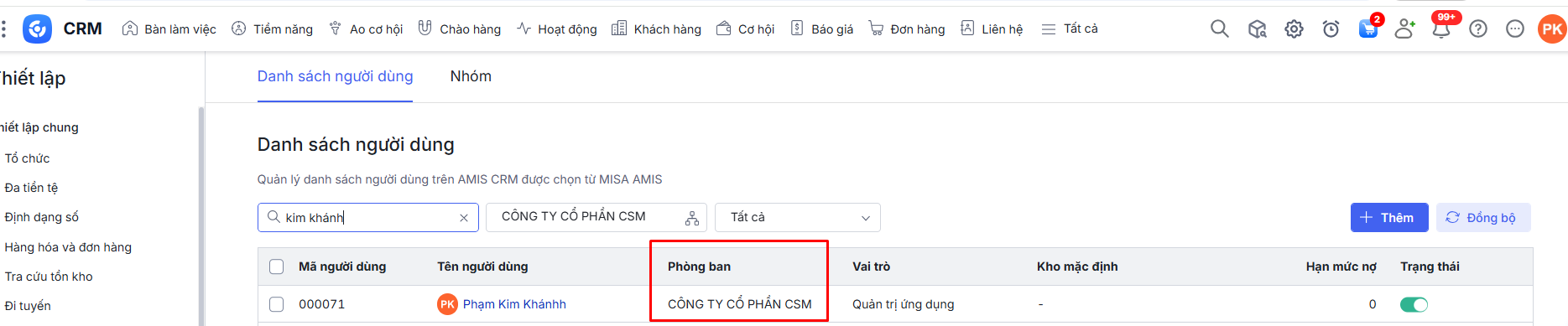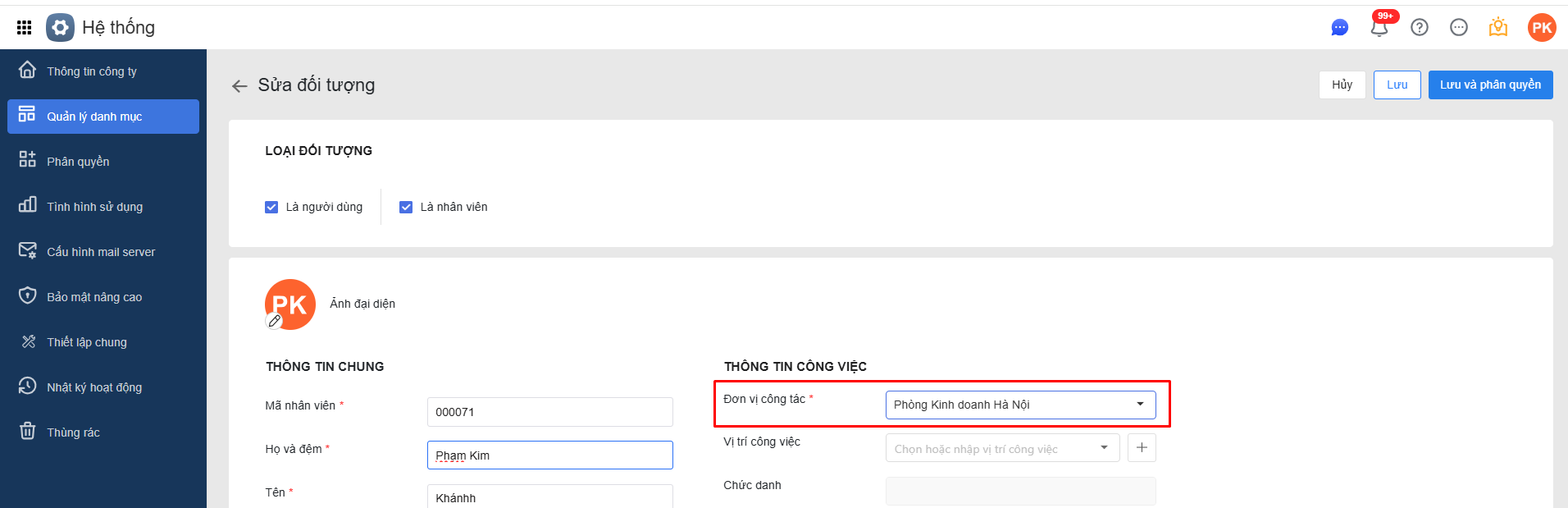 Nếu nhân viên đó chưa được cập nhật thuộc phòng ban cụ thể thì cần vào AMIS Hệ thống để cập nhật lại cơ cấu đúng.