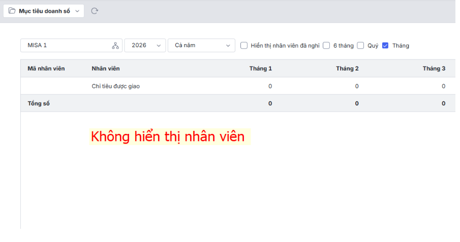 Bài viết hướng dẫn tổng thể các nguyên nhân phổ biến và cách xử lý khi gặp tình trạng không hiển thị hoặc hiển thị thiếu nhân viên trong danh sách giao mục tiêu (doanh số, số lượng, khách hàng) trên AMIS CRM. Việc xác định đúng nguyên nhân và thao tác khắc phục giúp đảm bảo việc giao mục tiêu cho nhân viên được đầy đủ, chính xác, hỗ trợ quản lý hiệu quả.