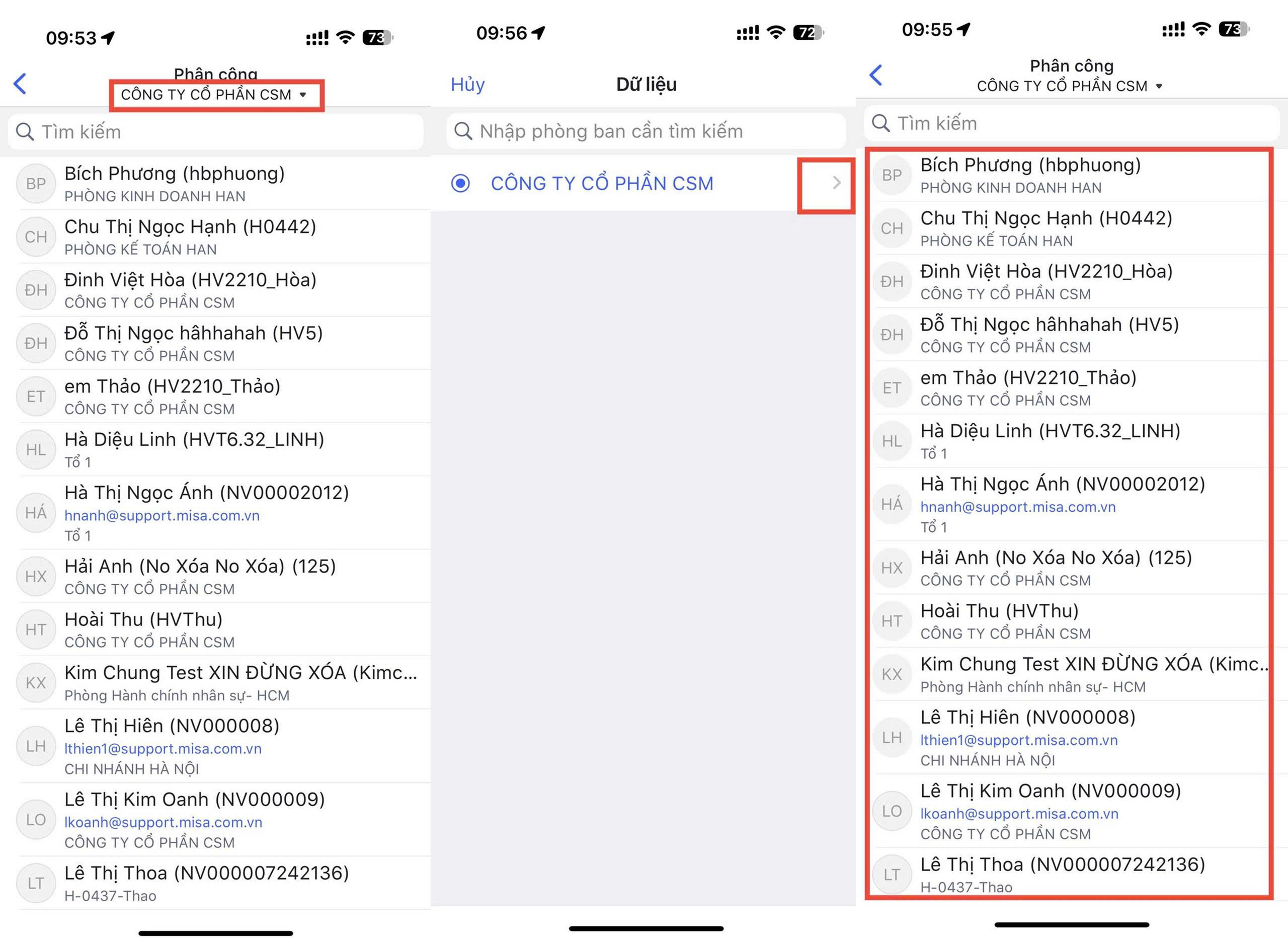 Bước 3: Ở danh sách nhân viên của phòng/ban vừa chọn, nhấn chọn nhân viên được phân công bản ghi.