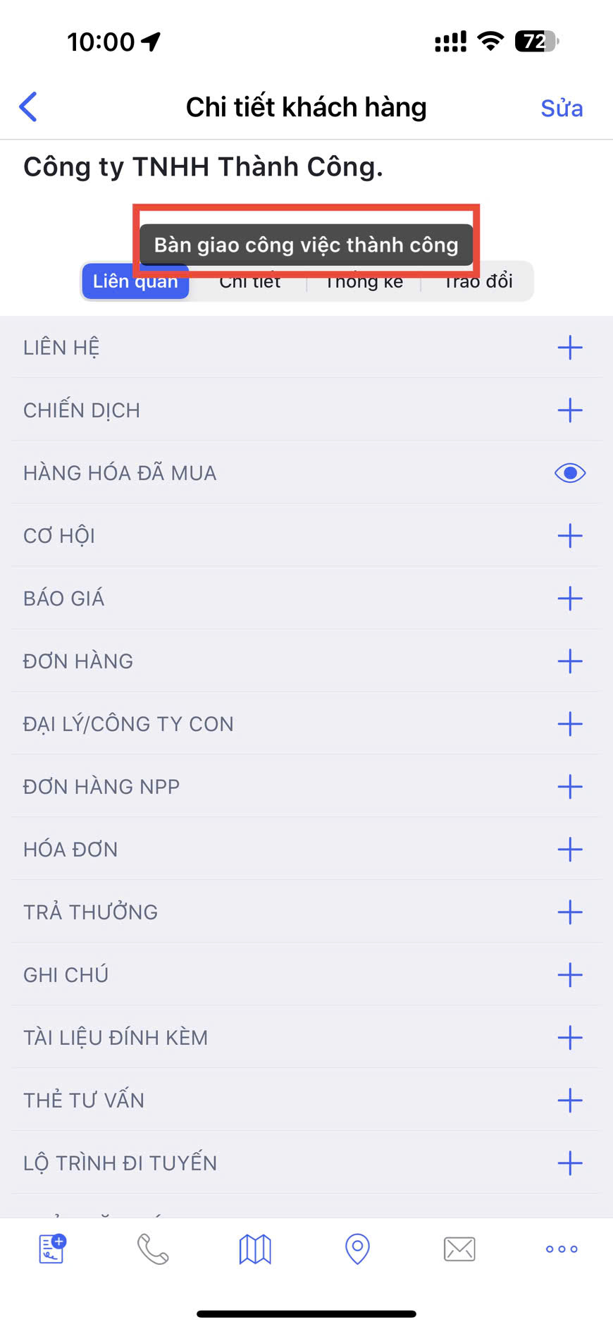 Bước 4: Hệ thống thông báo bàn giao công việc thành công.