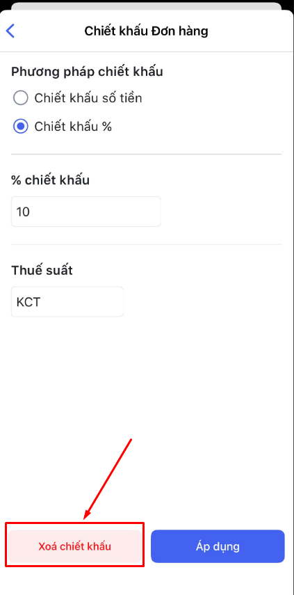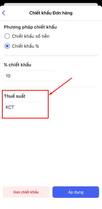 Bước 3: Chọn thông tin Thuế suất cho chiết khấu (nếu cần) trong chiết khấu đơn hàng.