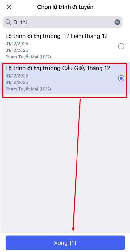 Bước 2: Chọn lộ trình đi tuyến\ Nhấn Tiếp theo.