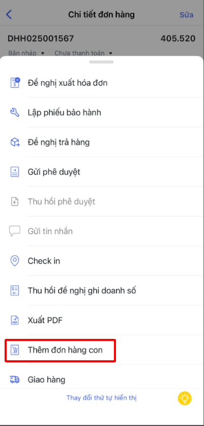Bài viết hướng dẫn các thao tác quản lý Đơn hàng trên ứng dụng AMIS CRM mobile, từ các thao tác nhanh trên danh sách, xem và cập nhật thông tin chi tiết, cho đến việc sử dụng các chức năng nâng cao như sinh hóa đơn, gửi phê duyệt, xuất PDF… Việc quản lý đơn hàng một cách linh hoạt ngay trên thiết bị di động giúp NVKD xử lý công việc tức thì, đẩy nhanh quy trình bán hàng và nâng cao trải nghiệm khách hàng mọi lúc, mọi nơi.