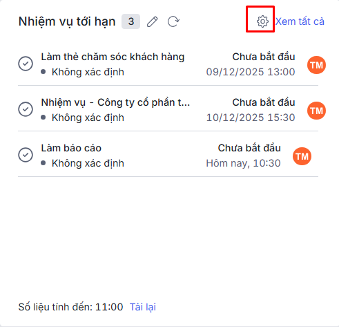 2.1. Cách xem báo cáo Nhiệm vụ tới hạn trên Bàn làm việc